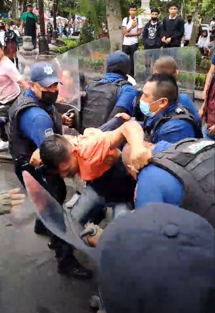 Dos jóvenes golpeados y encarcelados por unas horas, así como mujeres, niños y personas de la tercera edad violentados por la policía municipal, fue el saldo de la brutal represión que un grupo de antorchistas de Coatepec sufrió este 26 de septiembre en el parque Miguel Hidalgo, por órdenes del alcalde morenista, Raymundo Andrade; otro ejemplo fiel y burdo de lo que es la real esencia de los falsos izquierdistas agrupados en Morena, cuyo propósito central no es velar ni defender los intereses de las clases populares y humildes, sino los de quienes concentran la riqueza y el poder del país en sus manos.
